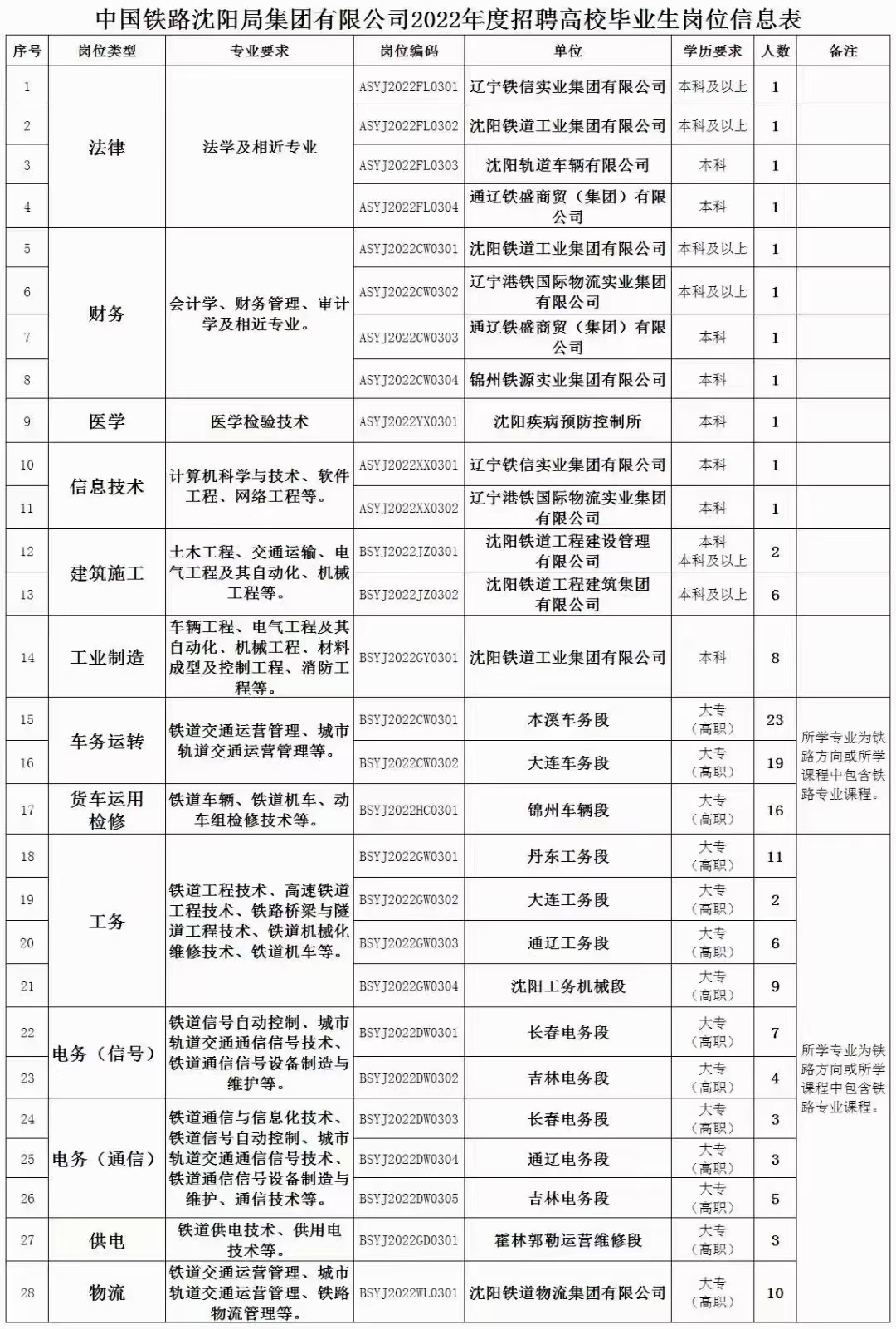 沈陽鐵路局招聘正式職工