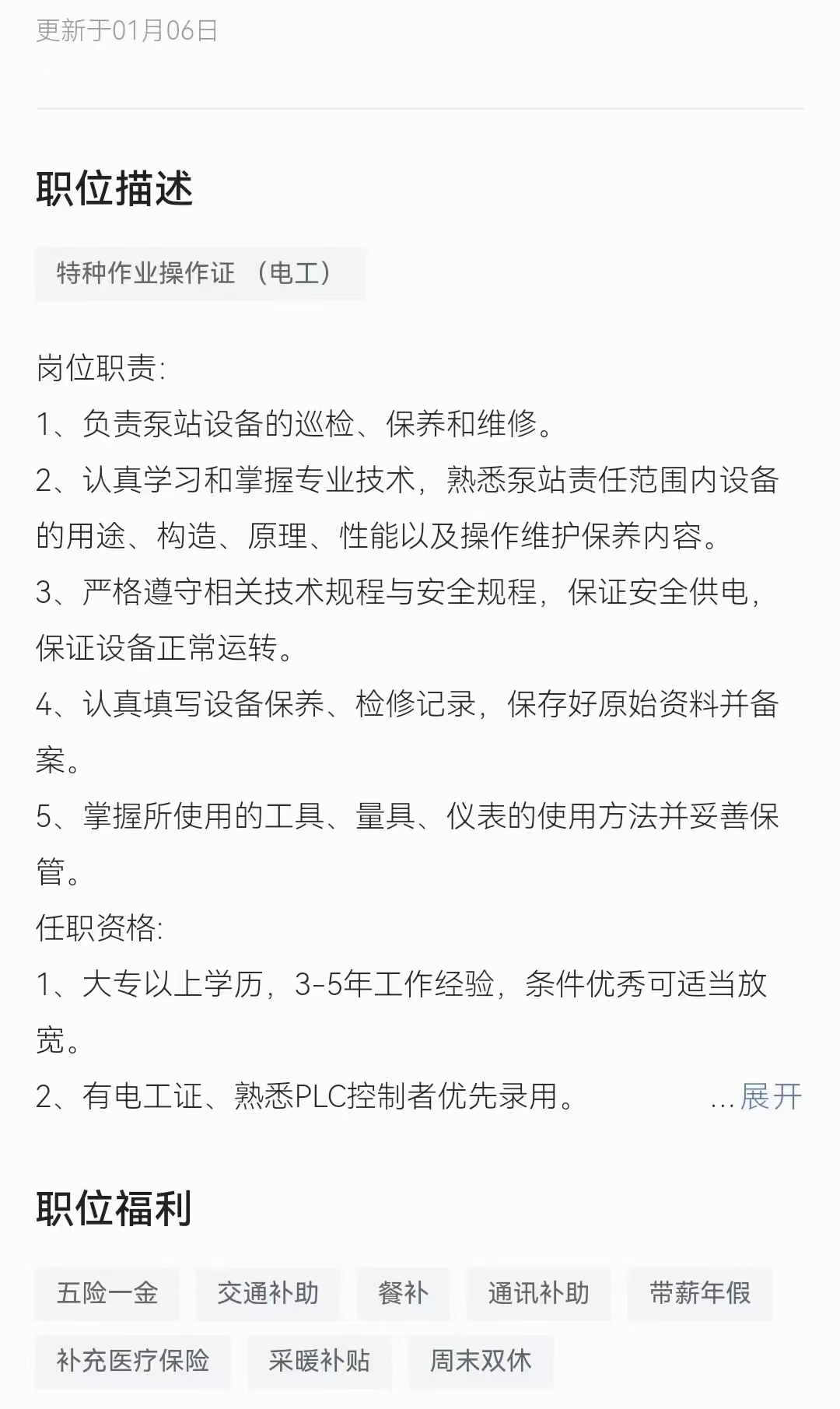 大慶國(guó)企直簽,大專(zhuān)以上學(xué)歷,有電工作業(yè)證者優(yōu)先,年后面試,五險(xiǎn)一金,薪資3500+交補(bǔ),餐補(bǔ),年薪等福利,工作地點(diǎn)讓區(qū)。